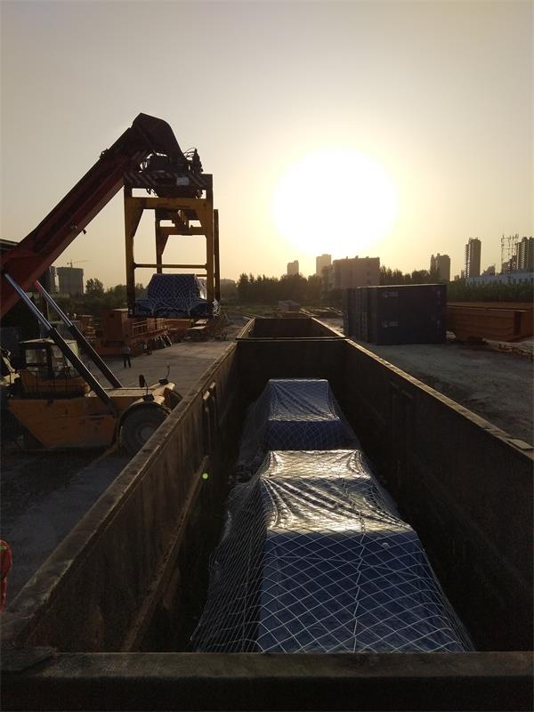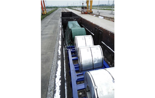 為滿足鋼廠內(nèi)部大批量使用集裝箱運(yùn)輸卷鋼的需求,同時(shí)考慮各鋼廠內(nèi)裝車作業(yè)條件,我公司經(jīng)過(guò)反復(fù)調(diào)查和研究,   設(shè)計(jì)并研制了一種20英尺平臺(tái)式集裝箱,創(chuàng)造了另一種全新的卷鋼運(yùn)輸解決方案。卷鋼有防雨要求時(shí),可在裝載后為卷鋼苫蓋防雨裝置。