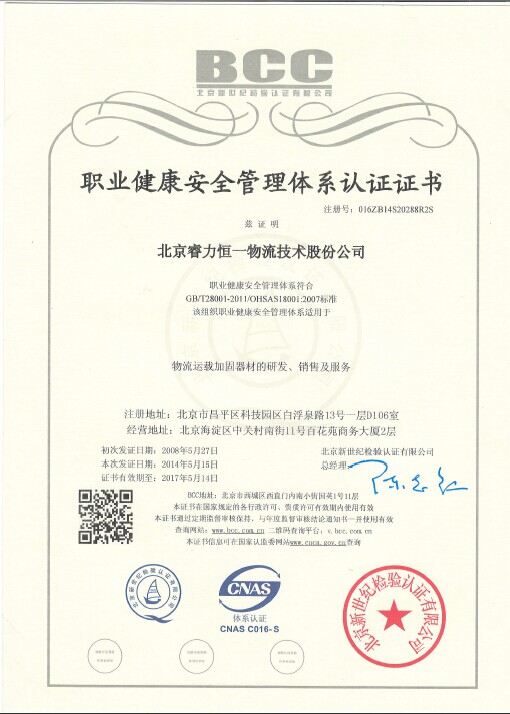 Address:UNIT 1101, Weidi Tech Masion, A18 Zhongguancun south street, Haidian district, Beijing 【Occupation Health Safety Management System 】